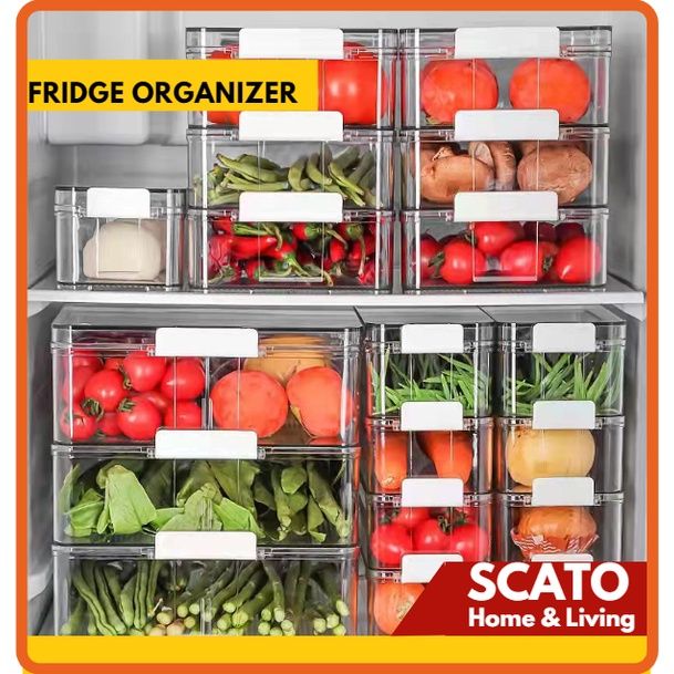 fridge stackable organizer bin set transparent ref food storage container with lid and handle