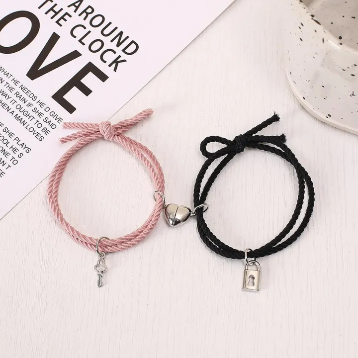 【Fullyoung_520 Store】New 2023 Simple Keys Lock Love Ion Absorption Secondary Couple Rope Bracelets