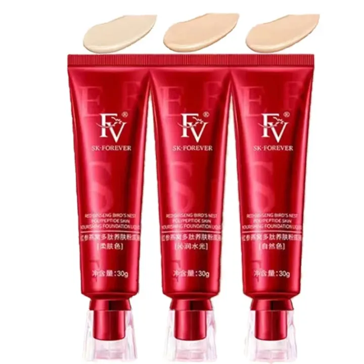 FV Red Ginseng Bird 'S Nest Polipeptida Skin-Nourishing Liquid Foundation Long-Lasting No Makeup Concealer Oil Control Waterproo