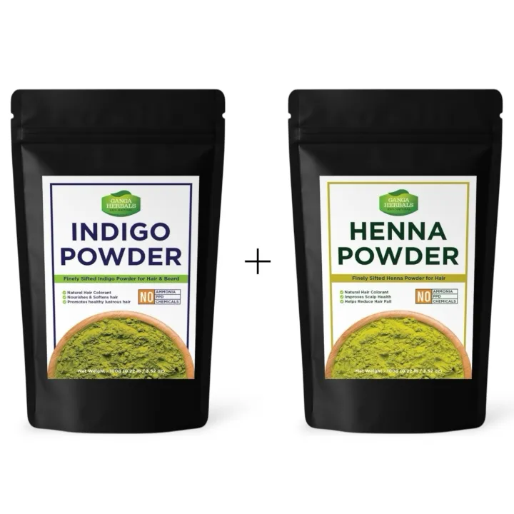 Ganga Herbals Indigo Powder + Henna Powder BUNDLE