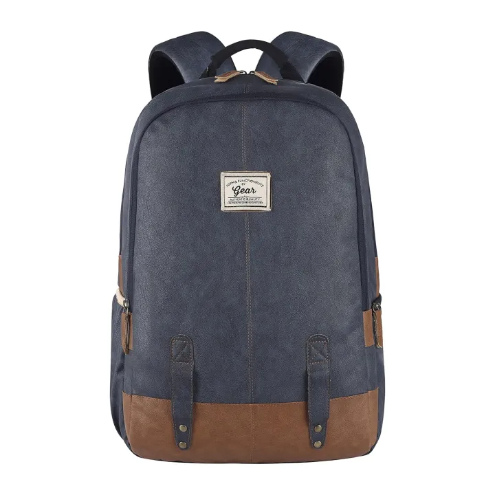 Gear Classic 20L Small Faux Leather Water Resistant Anti Theft Laptop Bag/Backpack for Men/Women (Navy-Tan)(FROM INDIA)NUZ