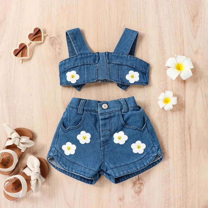Girls Denim Clothing Sets Summer Children Fashion Vest Shorts 2pcs Beach Suit For Baby Tracksuits Kids Set