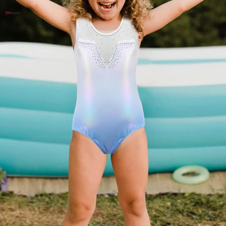 Girls Gymnastics Leotards Athletic Clothes Dance Leotards Tulle Splicing Sleeveless Ballet 6