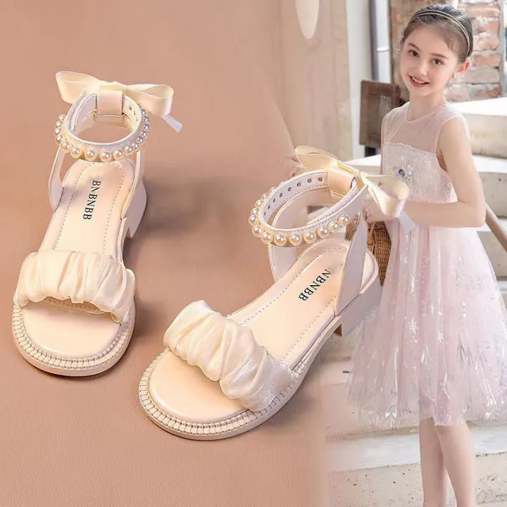 Girls' Shoes Princess Sandals2023New Summer Summer Girls' Children Teens Babies Soft-Soled High Heels