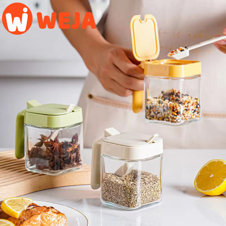 Glass seasoning box kitchen seasoning bottle flip spoon seasoning bottle light seasoning jar box combination set