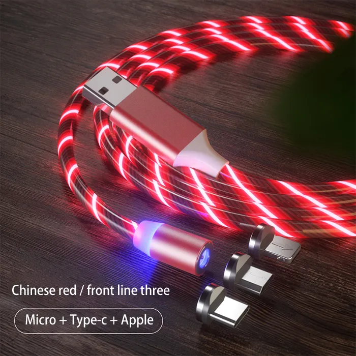 Glow LED 3 In 1 Lightning Fast Charging Magnetic USB Type C Cable Magnetic Cable USB Micro Charger Cable