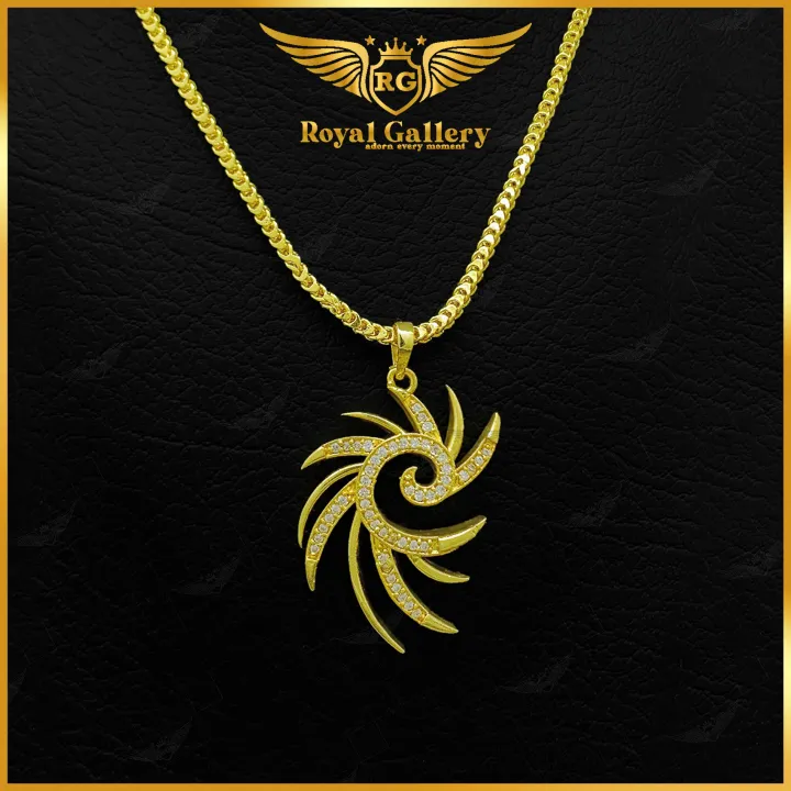 Gold Plated Box Chain & Lock Double Round Pendant With Free Gift Box