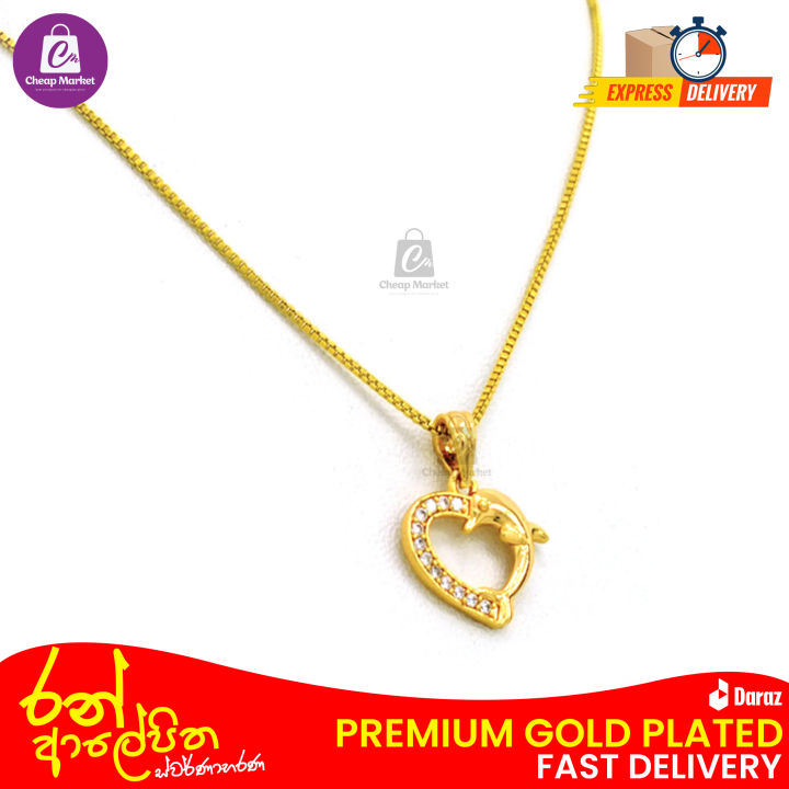 Gold Plated Thin Box Chain & Heart Dolphin Pendant with Fixed White Crystal Stone 18 - 24 inch Short & Long Necklace Guarantee Fashion and Stylish Design High Quality Long Lasting Color [ Cheap Market ]