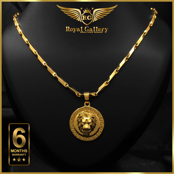 Gold Plated V-Cut Chain with Round Lion Pendant