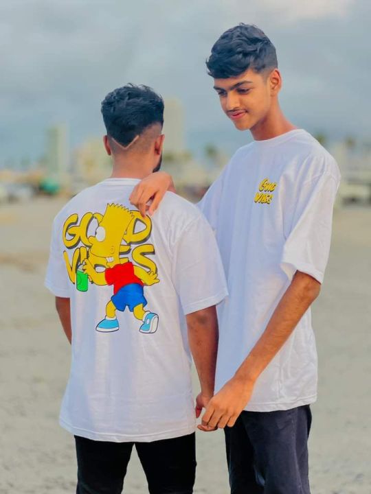 Good Vibs Couple,Unisex Cotton Half Sleeve Printed Oversized t Shirts for Women/Men, Loose t Shirts for Women/Men, Baggy t Shirt for Women/Men, Graphic Tshirt for Women/Men Oversize, t shirt.