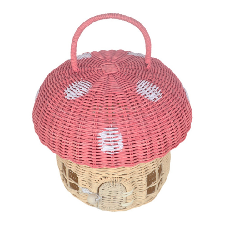 Handmade Rattan Mushroom-Shaped Storage Basket- Cute Handmade Handcrafted Gift Decoration Artwork Rattan, Pink Easy to Use 24 X 28cm