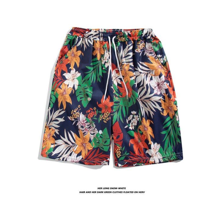 Hawaiian Quick-Drying Thin Floral Shorts Men's Hong Kong Style Loose-Fitting Loungewear Casual Shorts Korean Style Seaside Couple's Cropped Pants