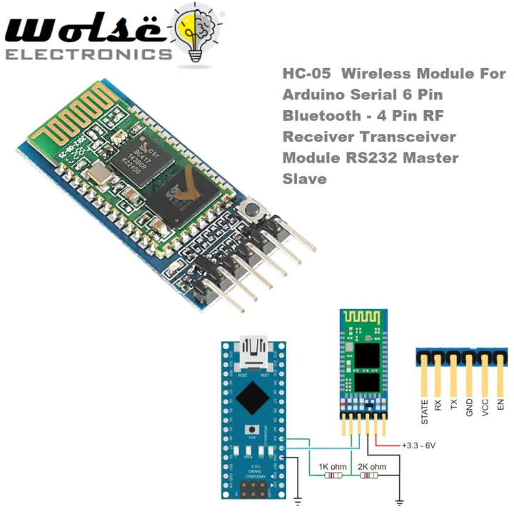 HC-05 HC05 Wireless Module For Arduino Serial 6 Pin Bluetooth - 4 Pin RF Receiver Transceiver Module RS232 Master Slave