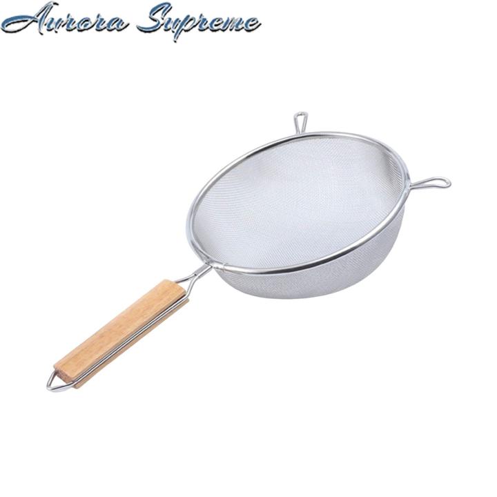 Heavy-duty Kitchen Strainer Fine Mesh Stainless Steel Strainer with Wooden Handle Kitchen Colander Skimmer Spoon for Cooking Sifting Filtering Premium Metal Sieve Tool for Cuisine Easy-grip Kitchen