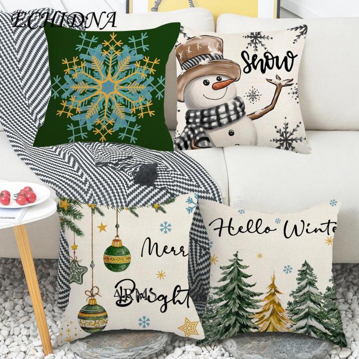 Hidden Zipper Pillow Case Christmas Square Pillow Case Festive Snowman Reindeer Snowflake Tree Print Home Decor Cushion Cover 45x45cm Perfect for Sofa Bedroom Southeast Asian Buyers' Favorite