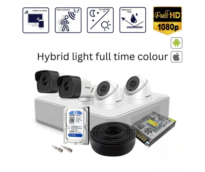 Hikvision hybrid light full time colour 2mp 4 camera CCTV system