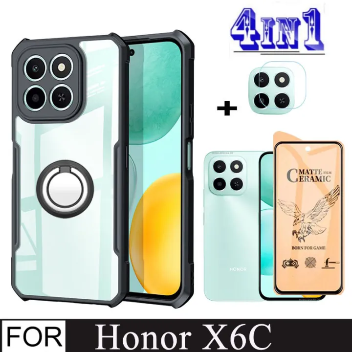 Honor X6C Shockproof Phone Case for Honor X8B X8A X7C X8C 4in1 Camera Lens Glass Screen Protector and Mobile phone holder