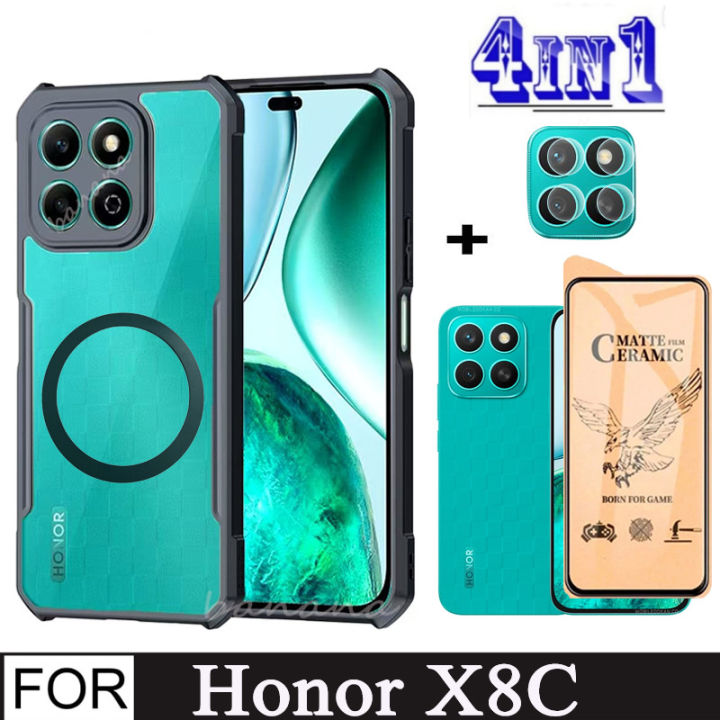 Honor X8C 4in1 Case Magnetic Sticker Shockproof Phone Case for Honor X8B X8A X7C Matte Ceramic Tempered Glass Back Film Screen Protector