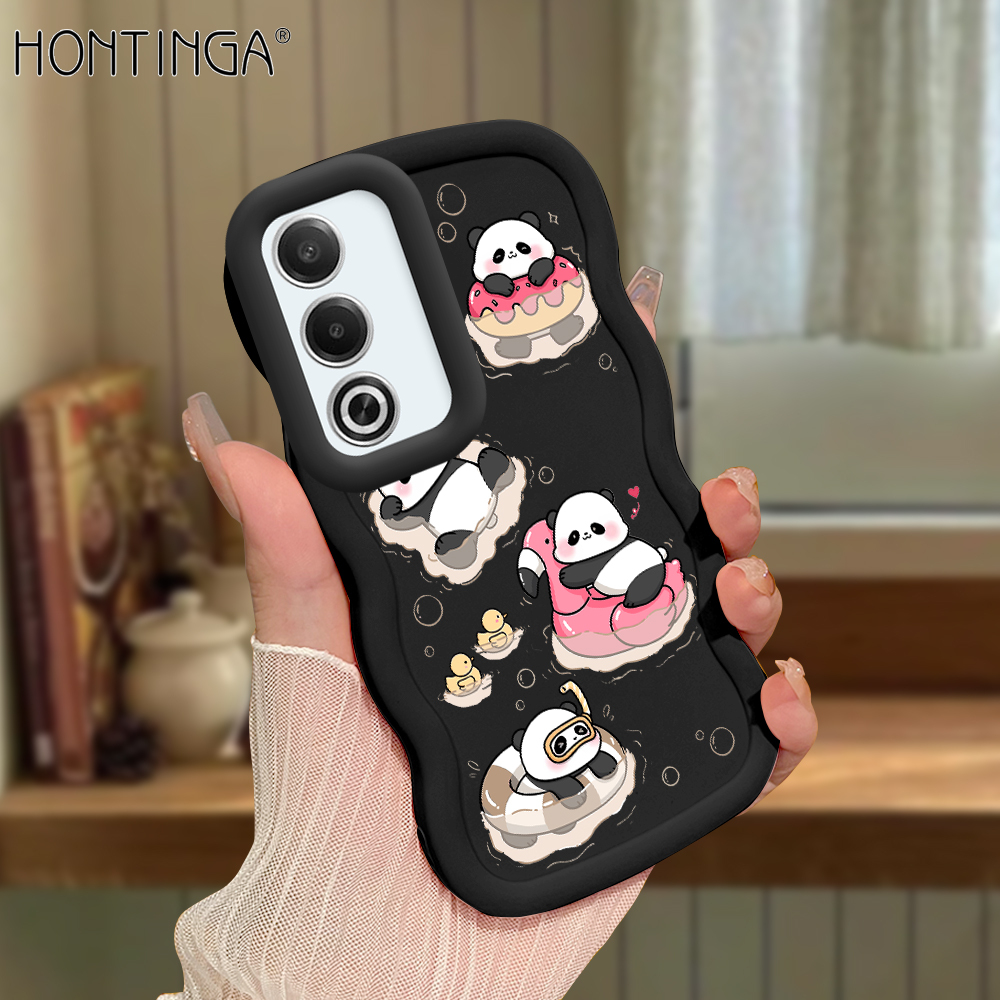 Hontinga for OPPO A3 Pro A3 A3X 4G 5G Back Cover Cute Panda Pattern Luxury Phone Cover Soft Silicone Macaron Wave Mobile Case