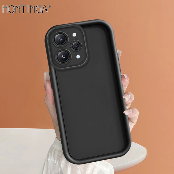 Hontinga for Redmi 12 Back Cover Luxury Ladder Soft Camera Protection Rubber Phone Case