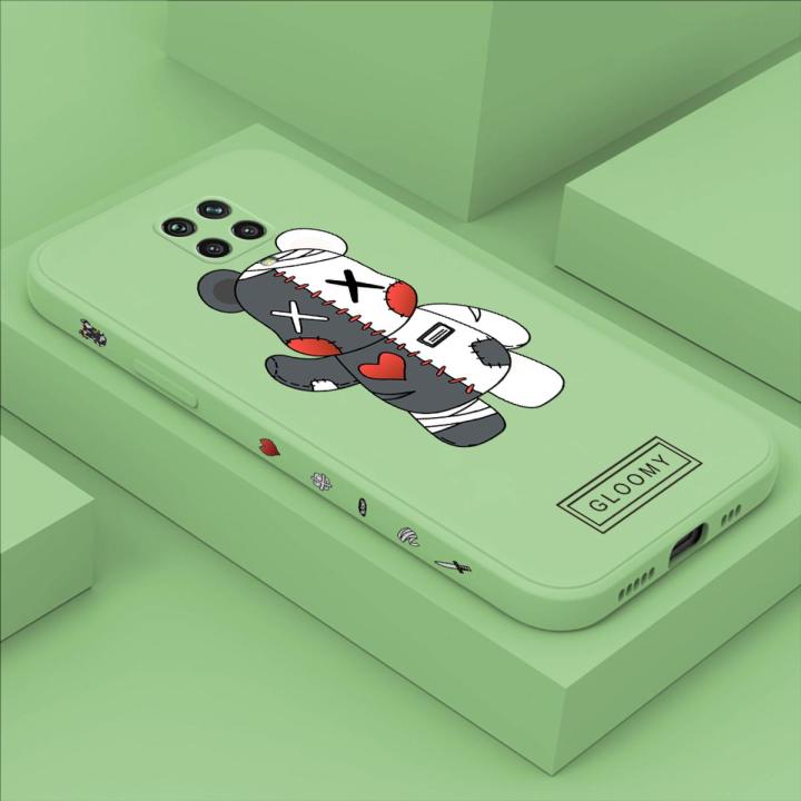 Hontinga for Redmi Note 9S Case Side Design Cartoon Bandage Bear Back Cover Soft Square Edge Pattern Liquid Silicone Phone Cases