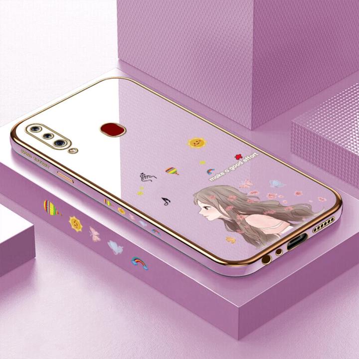 Hontinga for Samsung Galaxy A20S Back Cover Luxury 6D Plating Sunshine Girl Side Pattern Case Soft Silicone Square Phone Cases