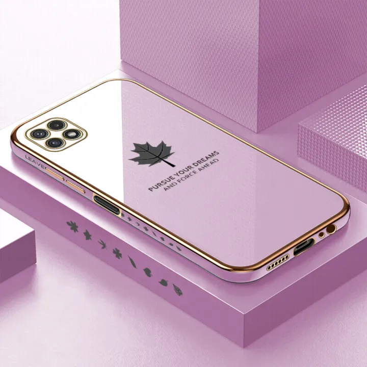 Hontinga for Samsung Galaxy A22 5G Back Cover Luxury 6D Plating Maple Leaf Side Pattern Case Soft Silicone Square Phone Cases