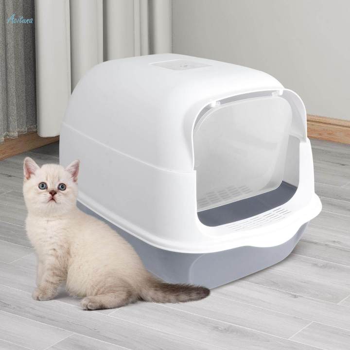 Hooded Cat Litter Box Pet Litter Box Enclosed Cat Toilet Durable Kitty Litter Tray High Edge Litter Box for Small Cats Pet Accessories