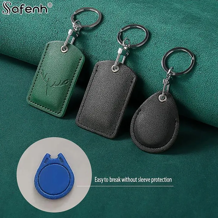 【HOT】 1Pc PU Leather Access Card Case Leather Card Holder Keychain Key Ring Door Lock Access Tag ID Card Case Keychain Access Card Bag