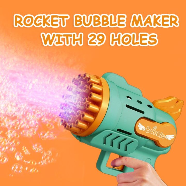 【HOT】 29 Holes Bubble Machine Electric Automatic Soap Rocket Bubbles Machine Portable Outdoor Party Toy Kids Gifts Birthday Gift