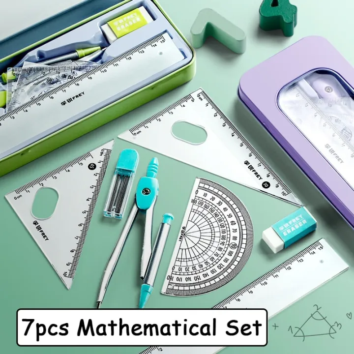 【HOT】 7 Pcs/Set Mathematical Rulers Set Multi-Function Professional Compass Ruler Drawing Tools School Supplies Students Stationery