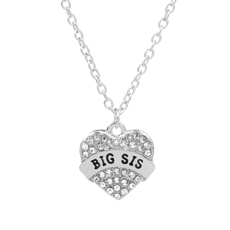 【Hot selling items 】big middle little baby sis Necklaces For 2 3 4 white pink blue crystal heart sister Necklace gift best sister