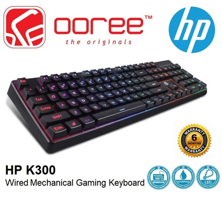 HP K300 WIRED USB MECHANICAL GAMING KEYBOARD MULTI-COLOR RAINBOW BACKLIT WITH 104 KEYS DOUBLE INJECTION KEY-CAP. CABLE: 1.8 METERS