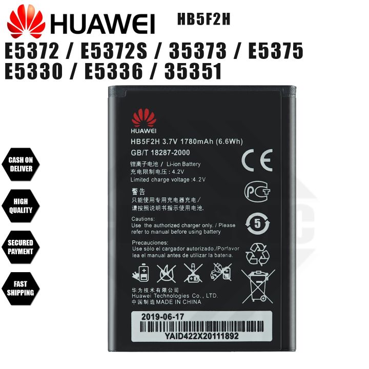 Huawei E5372 / E5372s / E5373 / E5375 / E5330 / E5336 / E5351 / E5356 / E5356s-2 / E5330Bs-2 / E5377s-32 / EC5377 / EC5377U-872, Battery Model HB5F2H Capacity 1780mAh