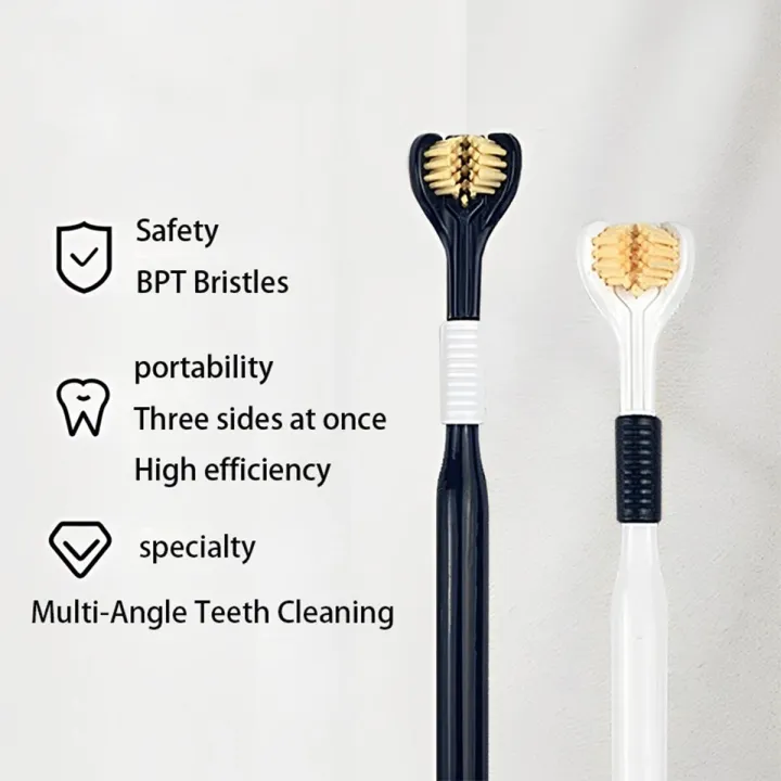 【HUT】 Triple Sided Toothbrush Soft Bristles Tongue Scraping Three Heads U-Shaped Three Sides At Once Triple Cleaning Portable For Home