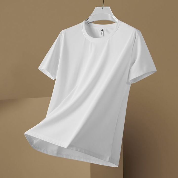 Ice%20silk%20short%20sleeve%20T%20T-shirt%20Men's%20Summer%20Thin%20Smooth%20Beaded%20Breathable%20Trendy%20T-shirt%20Solid%20Color%20Simple%20Ice%20Clothes%20-%20Image%201