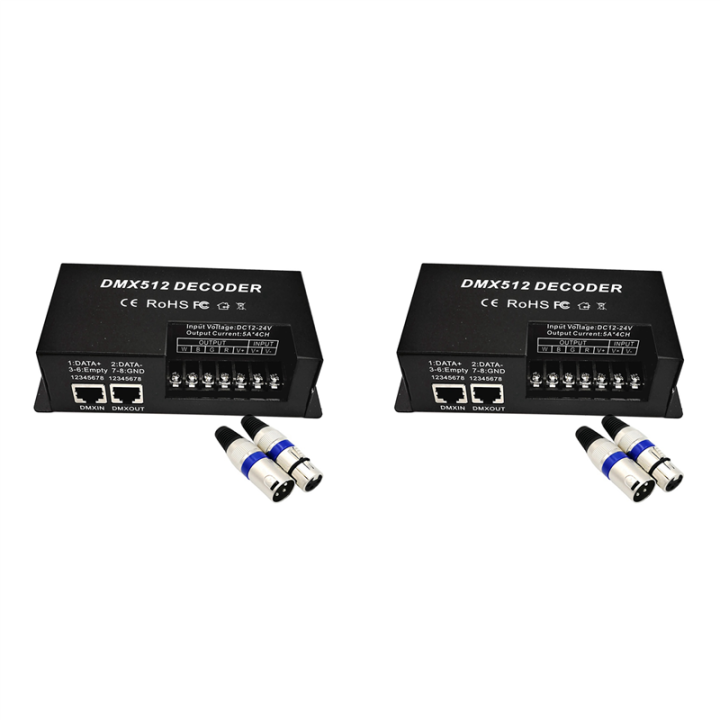 ICQURBT 2X 512 4 Channel Decoder Stage LED Lighting Controller PWM Dimmer Driver 30A Input DC12V-24V RGB Led Bar Decoder