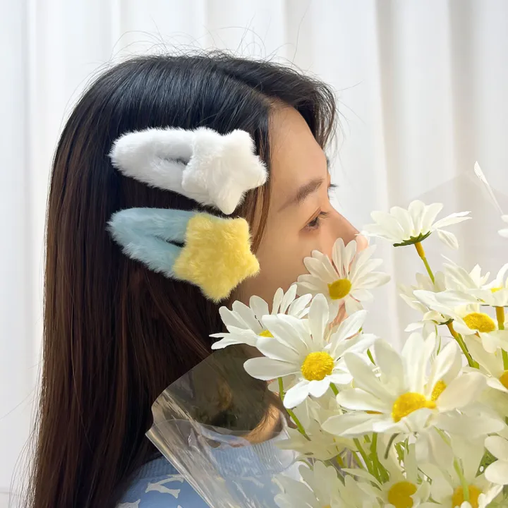 Ins Simple Winter Fashion Korean Cute Fur Star BB Hair Clips Hair Accessories Candy Color Bangs Girls Hair Clips