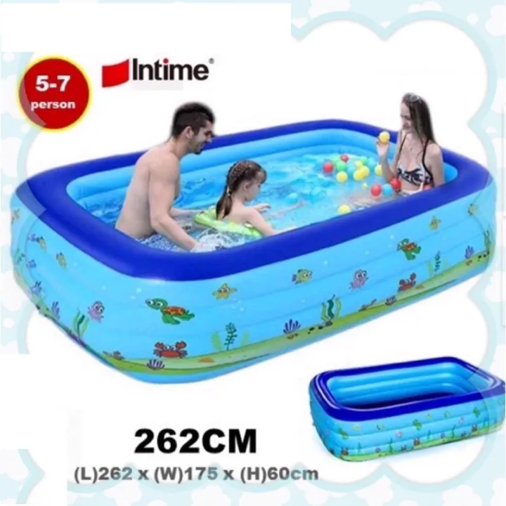 Intime 262cm 3 Rings Inflatable Rectangular Baby Swimming Pool Kids Pool Bathtub