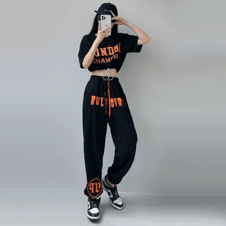 Jazz Dance Costume Women's Summer Korean StylejazzHigh Waist Top Hip Hop Loose Street Dance Pants Dancing Suit