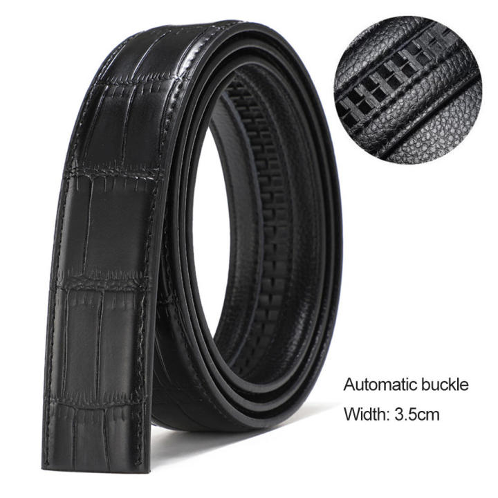 Jeans Accessories Belt Buckle Versatile Groove Head Headless Leather Belt Black Belt Pin Buckle Crocodile Pattern for Office Wear Business Professionals Formal Occasions Casual Outfits Fashion