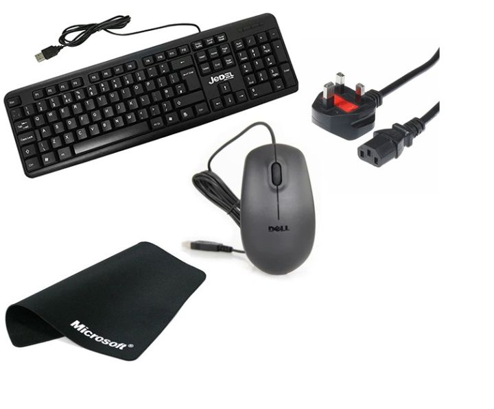 JEDEL K-11 DESKTOP ENGLISH KEYBOARD , Microsoft Mouse Pad Mouse Mat Microsoft , Fuse 3 pin Power Cable for Desktop PC Monitor Power Cord 1.5m , Dell MS111 USB Optical Mouse