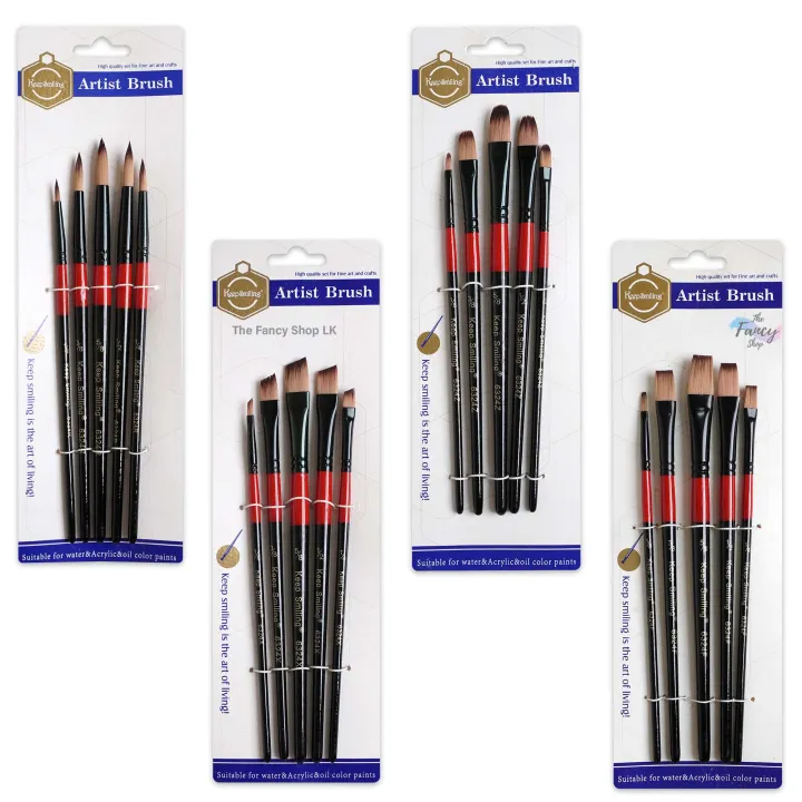 Keep Smiling Artist Paint Brush Pinsel Set 5 Pieces (Round/Angle/Flat/Filbert) Black