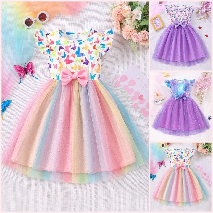 Kids Dress for Baby Girls Clothing Short Sleeve 3 4 5 6 7 Years Old Summer Casual Children Clothes Butterfly Unicorn Girls Dress