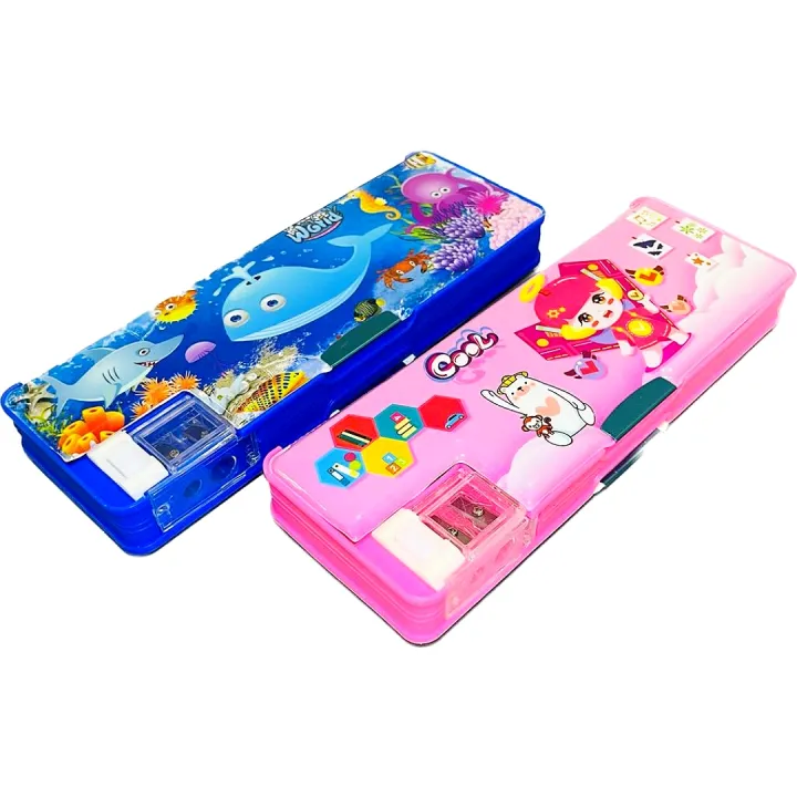 Kids pencil box case Magnetic Lock Pencil Box with Sharpener For Girls & Boys Pencil Case stationary