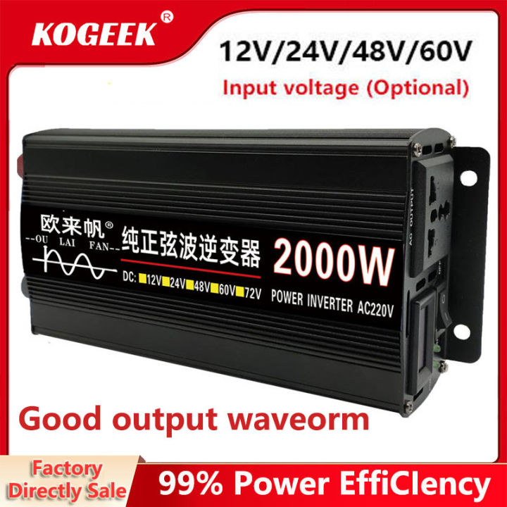KOGEEK 2000W Pure Sine Waveform Universal Inverter DC 12V 24V 48V 60V to 220V LCD Screen Inverter