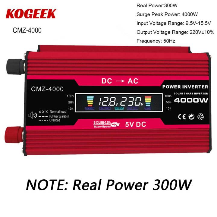 KOGEEK%20300W%20(Real%20Power)%20Peak%20Power%204000W%20LED%20Display%20Modified%20Sine%20Wave%20Inverter%20Rated%20Power%20Inverter%20DC%2012V%20to%20AC%20220V%20Converter%20High%20Frequency%20Car%20Power%20Charger%20Inverter%20with%202%20USB%20Port%20AC%20Socket%20-%20Image%201