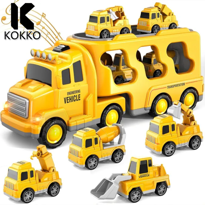 KOKKO Fire Truck Toy For Kids Engineering Car Model With Lights Music Storage Transport Vehicle For Boys Birthday Christmas Gifts