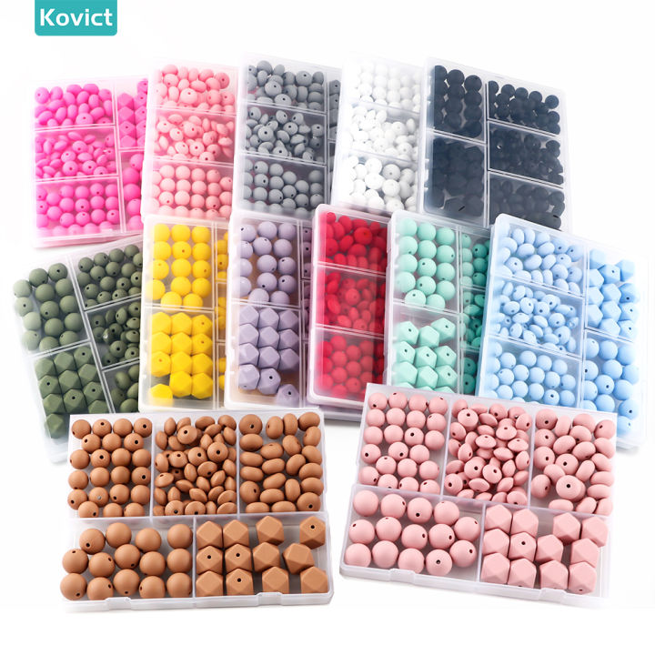 Kovict 110Pcs/Set Silicone Beads Round Lentil Hexagon Loose Bead For Jewelry Making DIY Necklace Bracelet Keychain Accessories