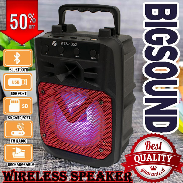 KTS-1352 Bluetooth Speaker Size 3-4 Hours Battery USB, Memory Card, RGB Lights Mobile & Laptop Bluetooth Connectivity 6D Bass Bluetooth 4.2 Wireless Speaker with USB TF Card Jack Subwoofer Extra Bass with Led Light Ultra Loud Stereo Speaker, Fm Radio, Tf